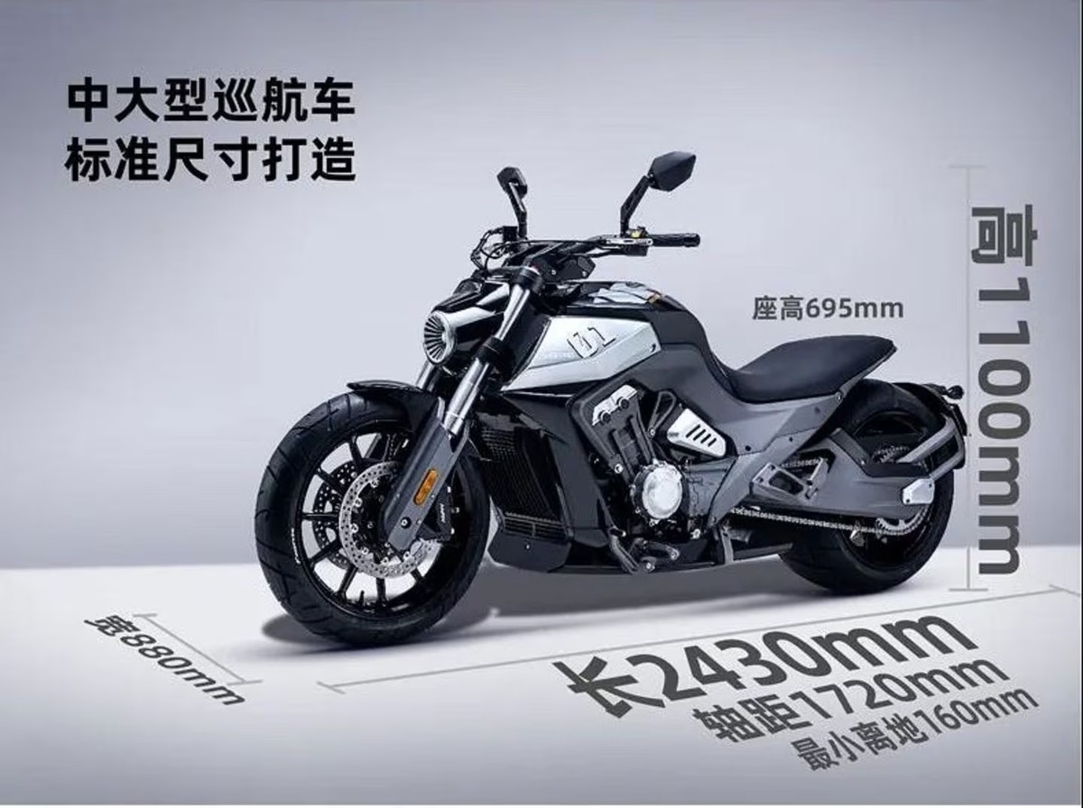 L’LFC 700 ha un design inconfondibile che si distingue dalla massa. Con una ruota posteriore da 310/35-18 e una distanza tra i centri di 67,7 pollici, la moto ha un aspetto massiccio, più simile a una moto custom che a un modello da showroom. Il motore è montato su un telaio in lega di alluminio e il design vanta un’aspirazione a turbina unica, che circonda il faro a LED, oltre a quattro uscite di scarico che richiamano l’attenzione. Il modello è ora in vendita in Cina, con l’arrivo previsto anche in Europa. Nonostante il suo aspetto imponente, il prezzo è molto competitivo: la versione base costa 45.800 yuan (circa 7.000 dollari), mentre la versione con Brembo e motore più potente arriva a 46.800 yuan (circa 7.200 dollari).