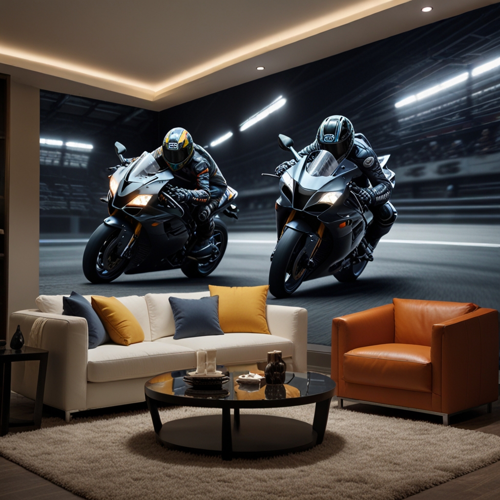La carta da parati 3D è una scelta perfetta per chi cerca un design che non solo decora ma arricchisce lo spazio con profondità e realismo. Mentre la carta da parati tradizionale si limita a coprire le pareti con colori piatti, la versione tridimensionale crea un effetto di immersione totale. Le immagini di moto e gare non sono mai state così vivide e coinvolgenti. Ogni dettaglio, dalla moto che sfreccia sulla pista alla scena di un pit stop, diventa più reale e palpabile.