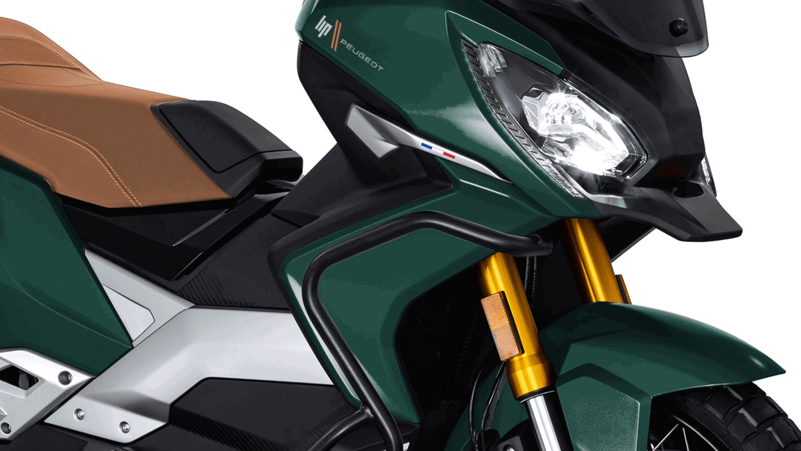 Le specifiche rimangono molto limitate fino a questo punto, ma quello che possiamo vedere è che la nuova Peugeot XP400 è dotata di barre di protezione che serpeggiano da sotto la carenatura anteriore e avvolgono il lato dello scooter di grande corporatura.
